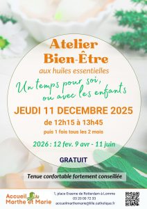 Pour une question d’organisation, merci de nous informer de votre présence : accueilmarthemarie@lille.catholique.fr ou 03.20.00.72.33