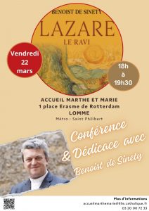 Nous aurons la joie d’accueillir Benoist de Sinety, curé de la paroisse Saint-Eubert à Lille et doyen de Lille à l’occasion de la parution de son nouveau livre : LAZARE, le ravi aux éditions du Cerf.