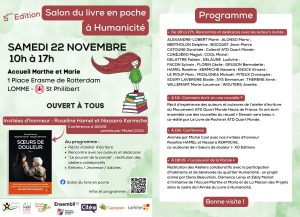 » Le 5° salon du livre du quartier Humanicité s’est tenu le samedi 22 novembre 2025 dans les locaux de l’Accueil Marthe et Marie avec plus de 20 auteurs venus dédicacer leurs OUVRAGES et dialoguer avec les visiteurs.