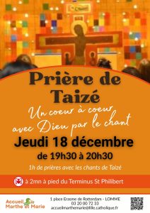 En décembre, nous renouvelons la proposition d’un temps de prière avec les chants de Taizé.
